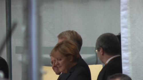 かろうじてテントや柵の隙間からステージの上のメルケル首相を文字通り「垣間見る」事ができましたが、皆がみんな同じことを考えているわけで、正直なところ、彼女の演説に耳を傾けるという余裕はありませんでした。