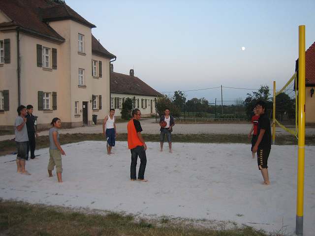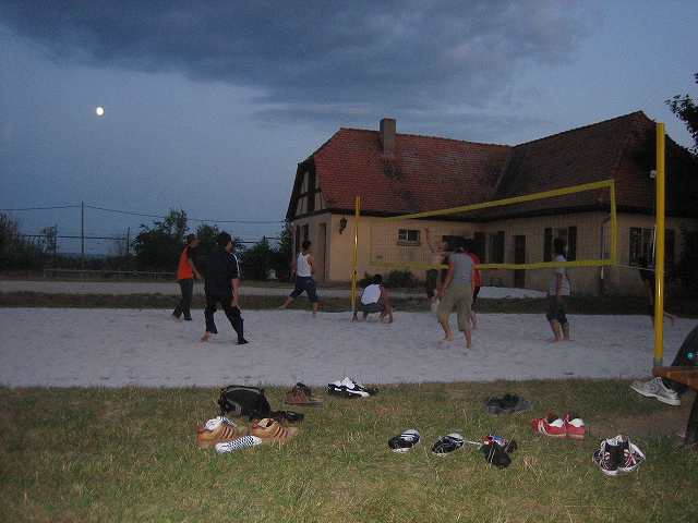 夜は夜で新設されたというビーチバレーのネットで遊びます。飛び入り参加は試験勉強に疲れたTriesdorfの学生さんたち。暗くなるまで白熱しました。