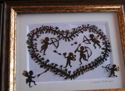 こちらは切り絵。とても細かくて感動的に美しいのですが、画質を落としてあるのでその素晴らしさがあまり伝わらないのが残念です。