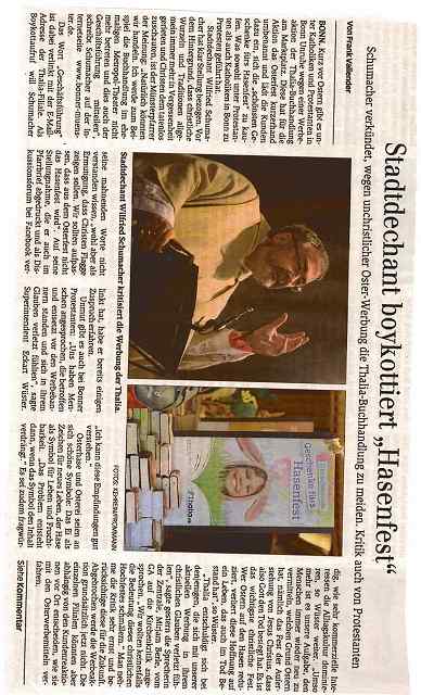 それに反応したのがカトリックの牧師さん。「イースターはうさぎ祭りではありません」本屋さんを信者さんにボイコットするよう示唆。自分は抗議メールをT社へ、。ちなみにプロテスタント信者からも抗議されたようです。