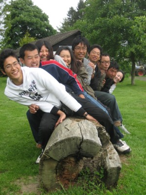 全員そろったところで近況報告など・・・。「いや、こんなのでいいのかなって言うぐらい楽しいです」、「言葉がちょっと聞き取れなくて・・・」、「農場主によく怒鳴られてますが、元気です」、「仕事が忙しいですが、問題は無いです」、「全然問題ないです」、「同僚も農場主もとっても優しくしてくれます」・・・。9人集まれば意見もいろいろのようです。