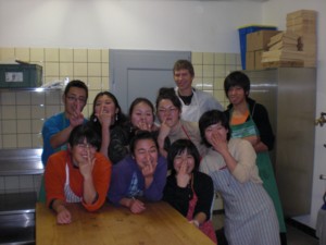 現役研修生たちがSchiersの家政学校でパン作りにいそしんでいたころ、日本では去年のスイス組達が全員集合していました。一人が先日めでたく結婚し、その披露宴に全員招待されたようです。北は山形から南は沖縄まで。再会場所は岩手です。良くぞ一人も欠けずに集まったり、という感じでしょうか。それぞれ就農したり、実家を継いだり、農業とは違う分野に就職したり・・・と進んでいる道はさまざまですが、どの子の表情も生き生きとしています。「今」が充実しているんですね。