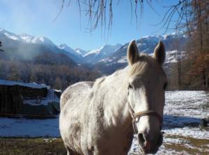 人懐っこい馬がご挨拶 「Bun di!!=これもレトロマンシュ語でこんにちは」