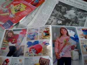 このシュールテューテというのは、学校で使う文房具(鉛筆・消しゴム・サインペンとか)やお菓子を詰め込んだ、いわば「入学のお祝い」みたいなものです。