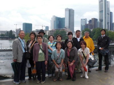 写真はフランクフルトを流れるマイン川にかかるアイゼナー橋(Eiserner Steg)の上での記念撮影。