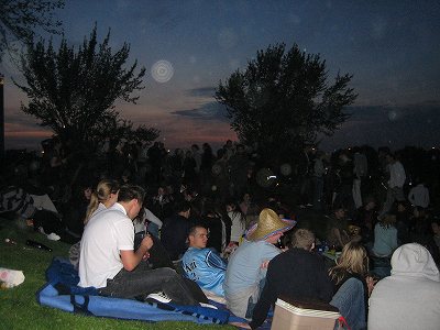 何本か待ってなんとかボン中央駅を20時に出発、Rheinaue自然公園に着いたのは20時半ごろでした。天気がよかったからか明るいうちから23時の花火を目当てにどこもかしこも人、人、人・・・。黒山の人だかりです。