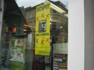 このビックチャンスは毎週2回(水曜日と土曜日)あって、もしその回に1等の当選者がいないときは次の回に繰り越されます。いわゆるキャリーオーバーです。ドイツ語ではジャックポットと呼ばれます。