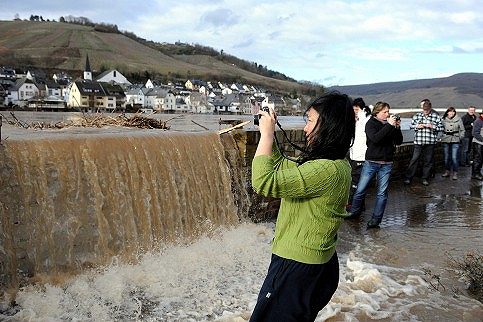 人々の関心も困惑というより興味深々ムードが高いような・・・? わざわざ何十年ぶりかに溢れ返っているライン川を見ようと黒山の人だかりも見受けられました・・・。